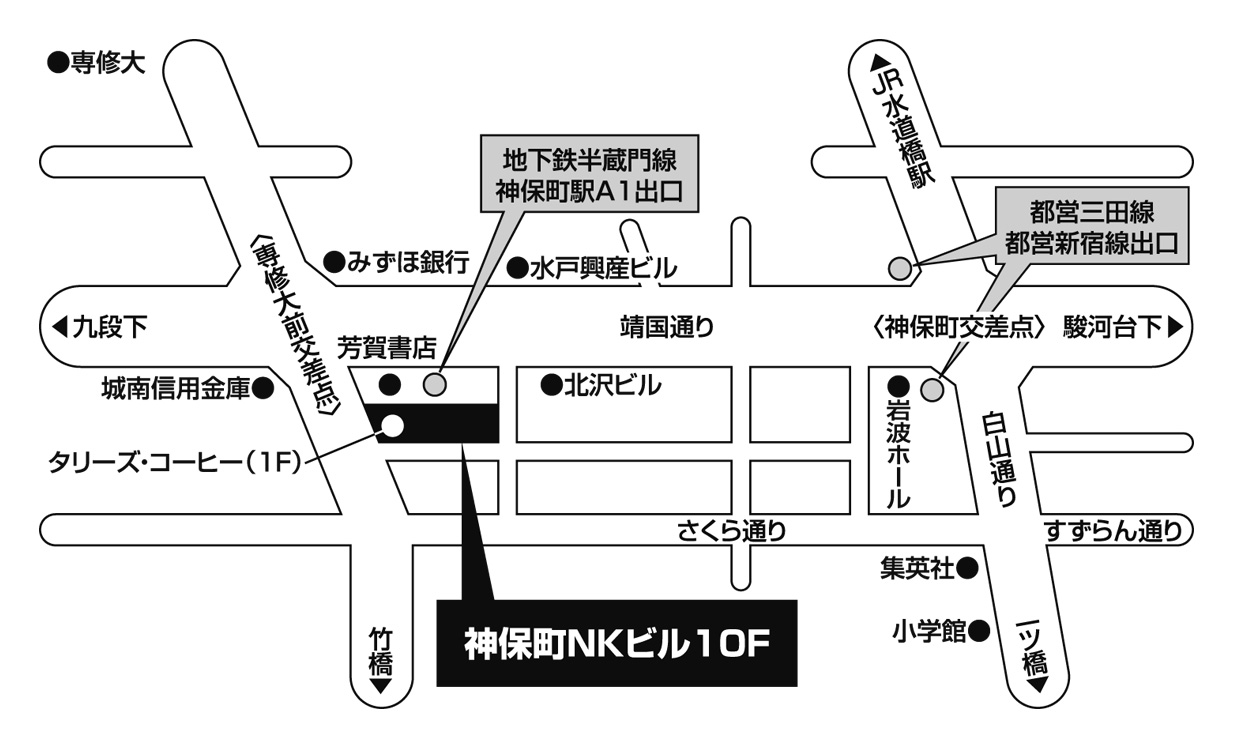 | 所在地 | 東京都千代田区神田神保町2-7-3 神保町NKビル10F 03-3264-5262(代表) 〔MAP〕 お問い合わせメール soumubu@hsag.co.jp |